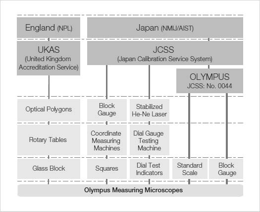 奧林巴斯通過(guò)一個(gè)嚴(yán)格的可追溯系統(tǒng)控制測(cè)量顯微鏡的準(zhǔn)度。并且在安裝系統(tǒng)時(shí)奧林巴斯也提供了可追溯的校準(zhǔn)服務(wù)。