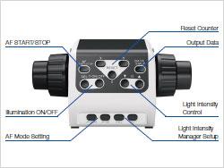 對(duì)于STM7測(cè)量顯微鏡系列,只要使用單一的操作裝置能夠執(zhí)行幾乎所有的測(cè)量顯微鏡操作,包括重置計(jì)數(shù)器、照明控制、調(diào)焦和自動(dòng)聚焦等功能。為了提高效率和方便性,您可以將裝置放在任何想要放置的位置,并可以輕松地單手操作。