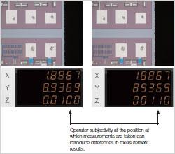 通過(guò)將圖案投影在視場(chǎng)范圍內(nèi),由操作者確認(rèn)上下圖案的重合情況,奧林巴斯的聚焦導(dǎo)航系統(tǒng)實(shí)現(xiàn)了重復(fù)性高的高度測(cè)量操作。普通的目測(cè)觀察進(jìn)行高度測(cè)量時(shí),即使是看上去非常清晰的已經(jīng)合焦的圖像,也會(huì)出現(xiàn)微小誤差。而使用STM7的聚焦導(dǎo)航系統(tǒng),只需匹配標(biāo)記便可進(jìn)行測(cè)量,因此減少了操作者的主觀性對(duì)測(cè)量結(jié)果造成的影響。